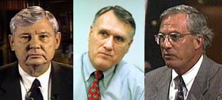 At the time of the attacks, ISI Director Lt. Gen. Mahmood Ahmad is at a breakfast meeting at the Capitol with the chairmen of the House and Senate Intelligence Committees, Senator Bob Graham (D) and Representative Porter Goss (R) (Goss is a 10-year veteran of the CIAs clandestine operations wing). The meeting is said to last at least until the second plane hits the WTC. [Washington Post, 6/18/2002] Graham and Goss later co-head the joint House-Senate investigation into the 9/11 attacks, which has made headlines for saying there was no smoking gun of Bush knowledge before 9/11. [Washington Post, 8/11/2002] Note that Senator Graham should have been aware of a report made to his staff the previous month (see Early August 2001) that one of Mahmoods subordinates had told a US undercover agent that the WTC would be destroyed. Evidence suggests that attendee Mahmood ordered that $100, 000 be sent to hijacker Mohamed Atta. Also present at the meeting were Senator Jon Kyl (R) and the Pakistani ambassador to the US, Maleeha Lodhi. (All or virtually all of the people in this meeting had previously met in Pakistan just a few weeks earlier.) Senator Graham says of the meeting: We were talking about terrorism, specifically terrorism generated from Afghanistan. The New York Times reports that bin Laden was specifically discussed. [New York Times, 7/3/2002; Salon, 10/14/2001; Vero Beach Press Journal, 10/12/2001] THIS SECTION ASSERTS part of THE GOVT'S OFFICIAL CONSPIRACY THEORY that "Al-Qaeda" and "Mohamed Atta" were actually aboard the planes and involved in the attacks on 9-11. Many researchers point out the obvious that the govt has offered very slim evidence to support that hypothesis, and has claimed "National Security" as reasons for not revealing more. Why have so many people gullibly accepted this ridiculous unsubstantiated conspiracy theory? Conditioning? The relevance of this entire section depends upon whether you believe the official story, but it clearly proves that something is fishy. |